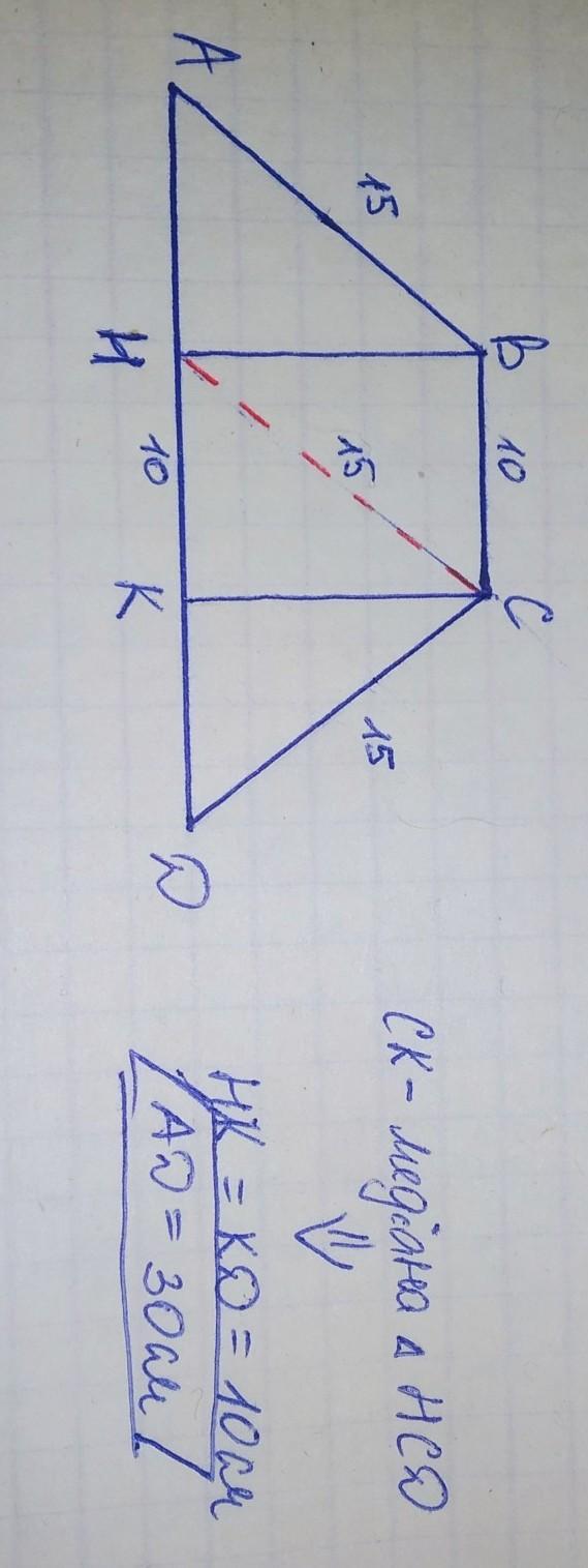 Как найти большее основание трапеции , если известны только боковые стороны(15) и меньшее основание (10)