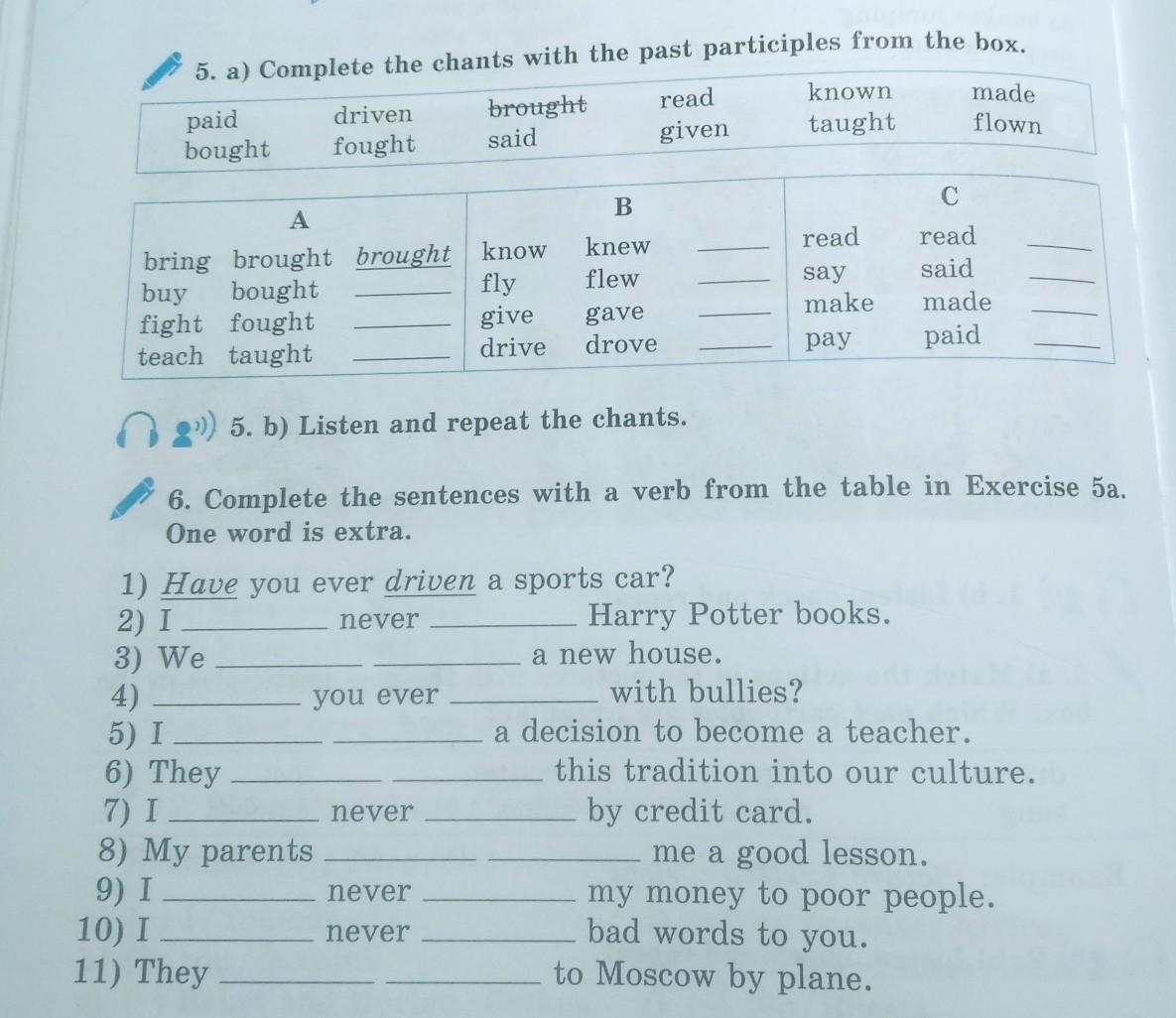 6. Complete the sentences with a verb from the table in Exercise 5a.