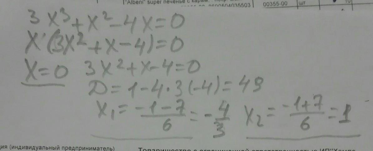 Розвязати рівняння, розкласти ліву частину на множники 3х в Кубе +х в квадрате -4х