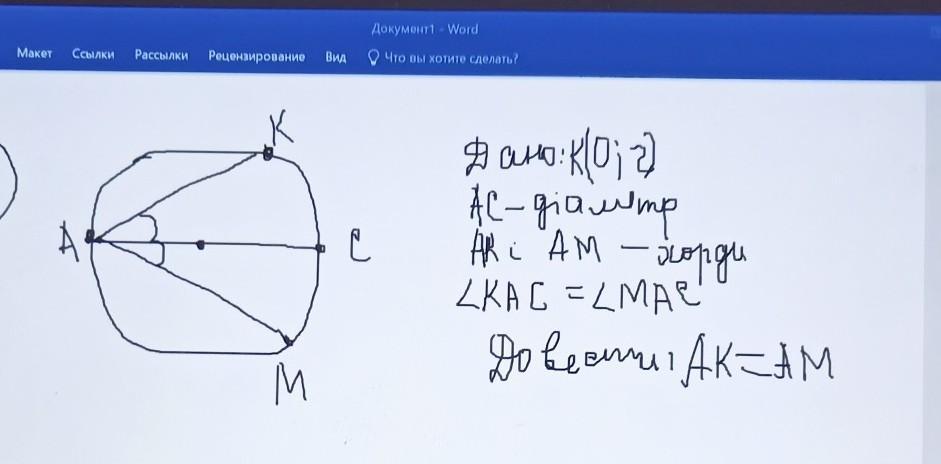 AK=AM за 2 ознакой ривности трикутникив 2 котами та бисектрисою разделяющий их