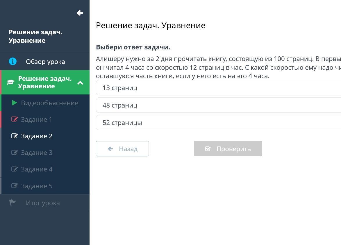 3) 52:4=13 - нужно читать со скоростью 13 страниц в час чтобы успеть прочесть оставшиеся страницы за 4 часа