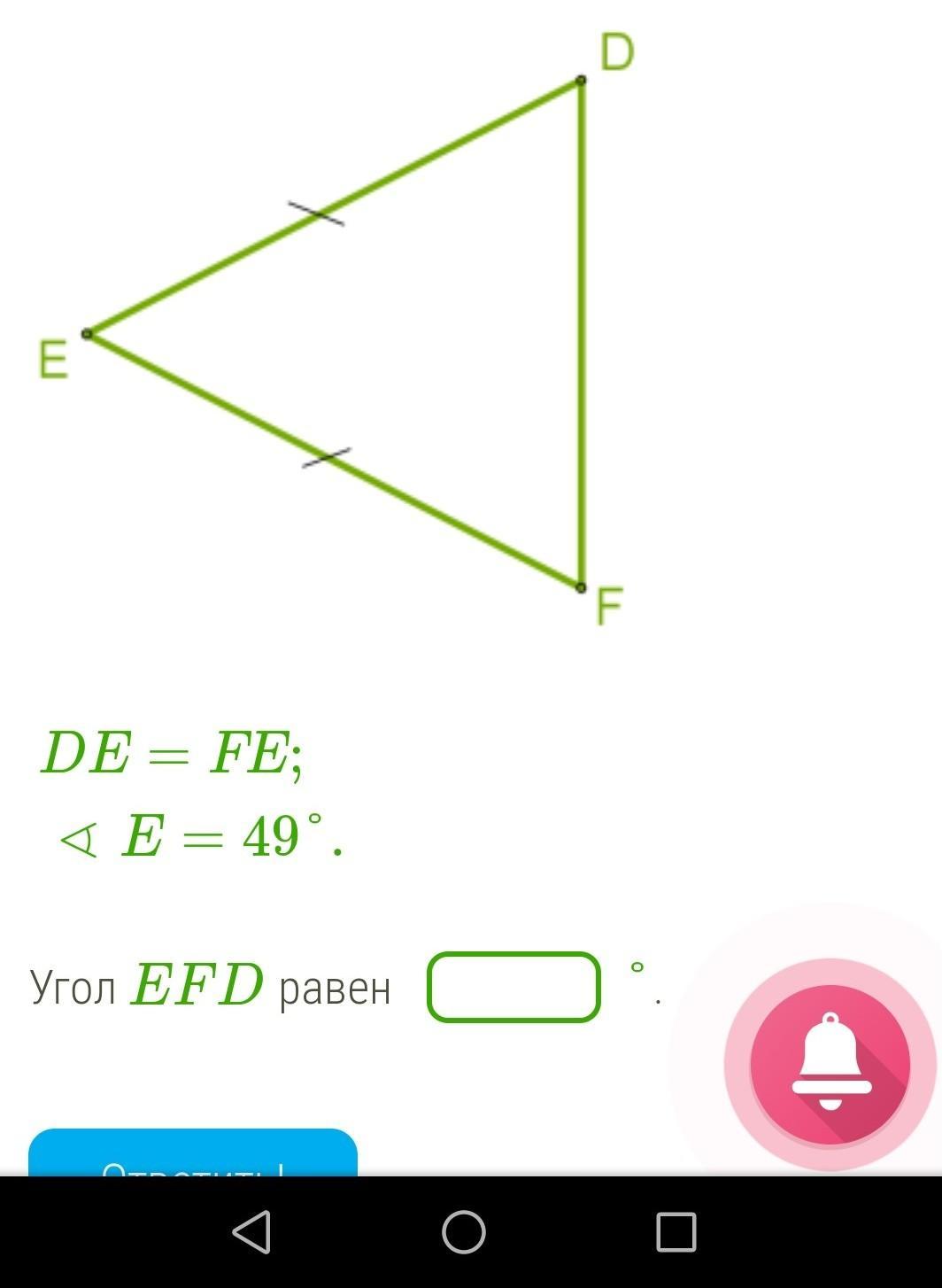 Так как ΔDEF равнобедренный, то ∡F = ∡D = α