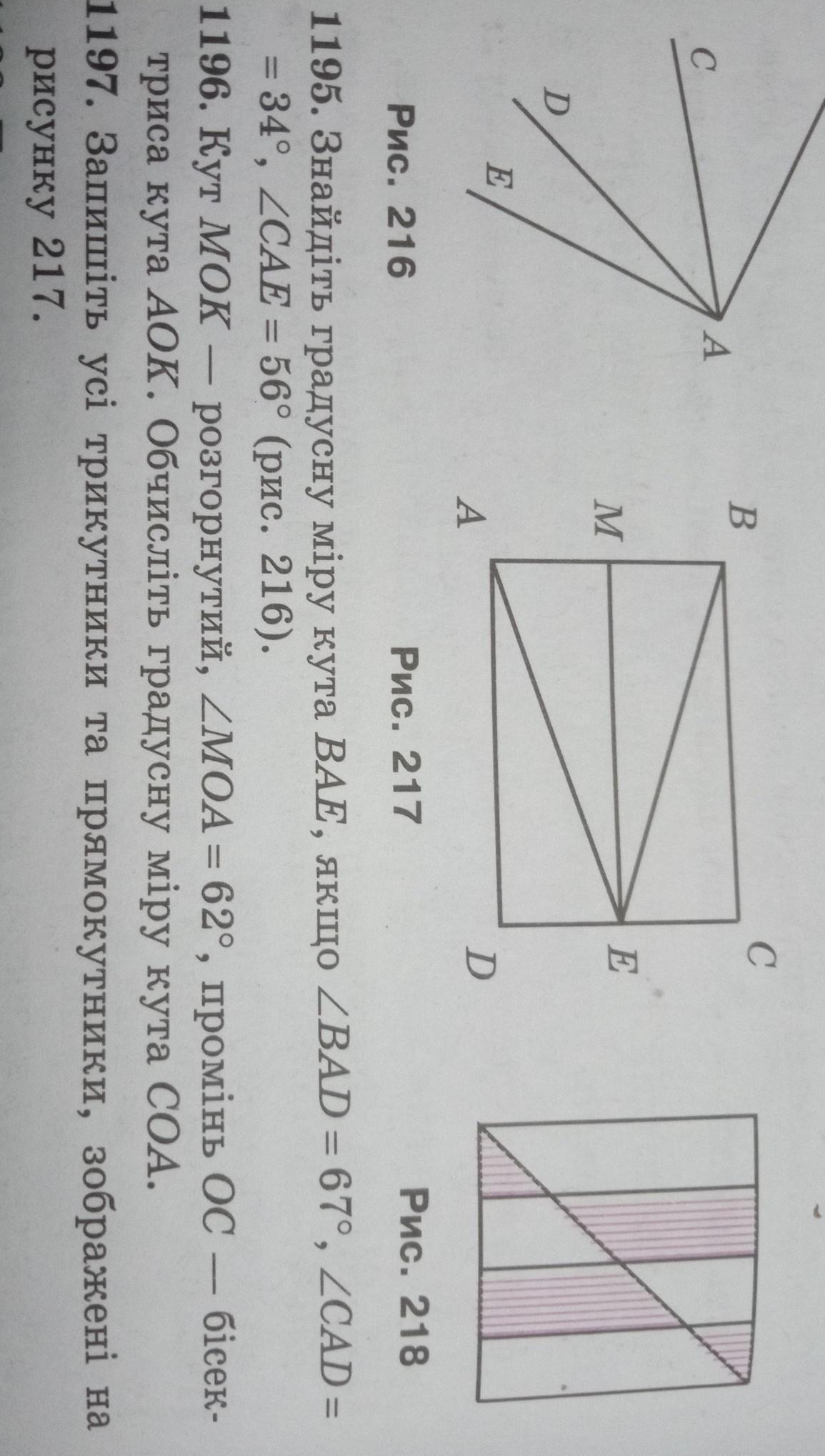 (10 баллов) 1197. Запишіть усі трикутники та прямокутники, зображені на рисунку 217