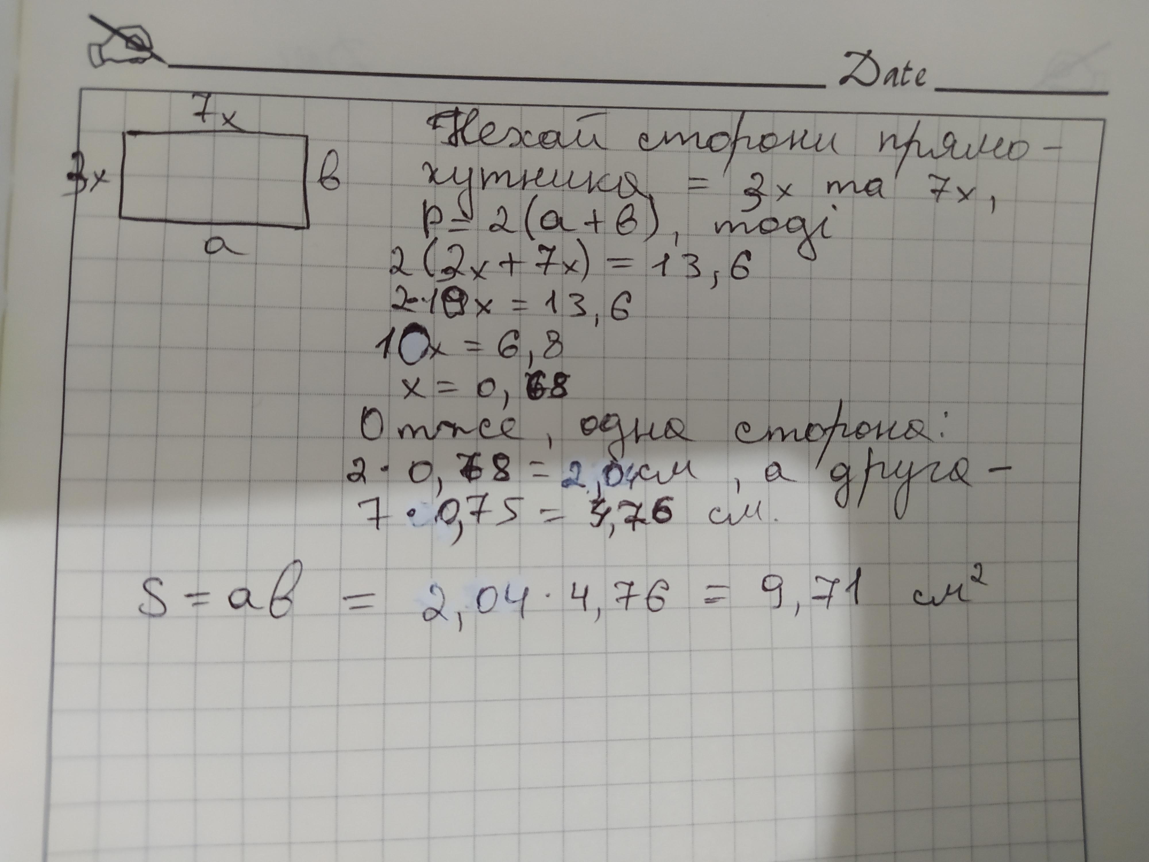 1 сторона (7х) = 7 * 0,68 = 4,76 см