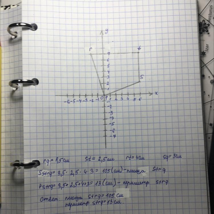 дано координати трьох вершин прямокутникаstrqs(6;2),t(6;7)r(-2;7) накреслить цей прямокутник.Втзначтекординату точки q і координати точки перетину його диаганалий визначте площу і периметр цього прямокутника