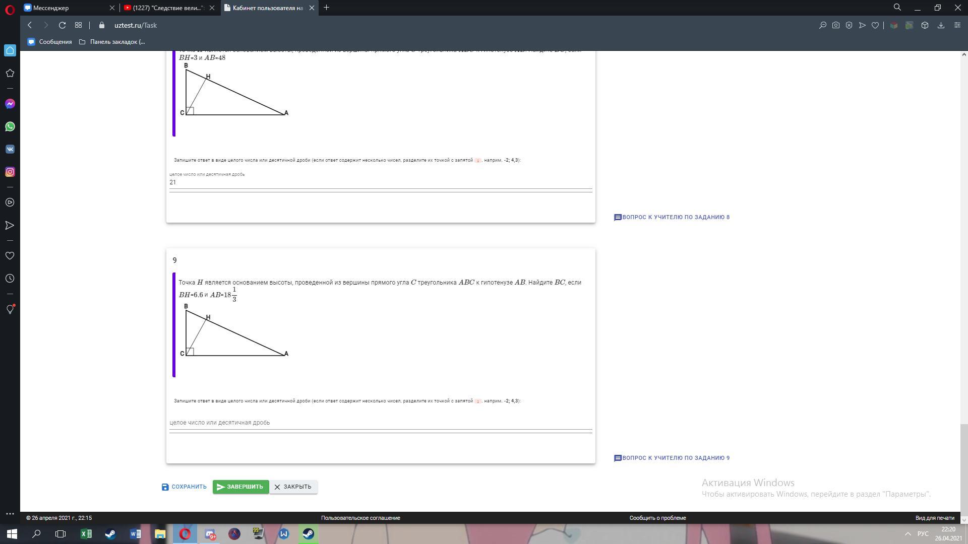 Найти АН, то есть от 18 1/3 отнять 6,6 (ВН) BH=176/15