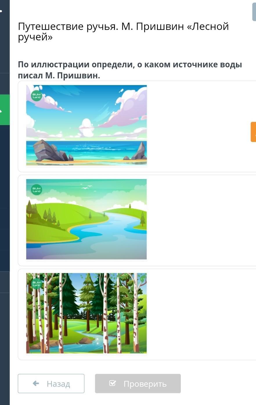 Пришвин писал по 3 картинке где в лесу течет ручей
