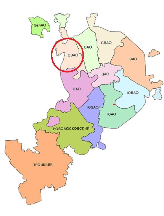 Как видно из карты, которая дана ниже в приложении, с Северным административным округом граничит Северо-Западный, Центральный и Северо-Восточный административные округа.