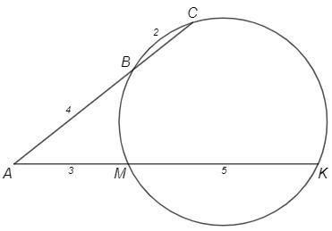 1.Из точки А, лежащей вне окружности проведены лучи АС и АК, пресекающие окружность в точках В, С и М, К соответственно, начиная от точки А. Найти длину отрезка АС и ВС, если АМ = 3, МК = 5, AB= 4. решение