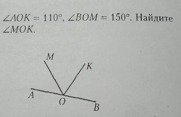 кут MOK = кут AOK-кут AOM=110°-30°=80°