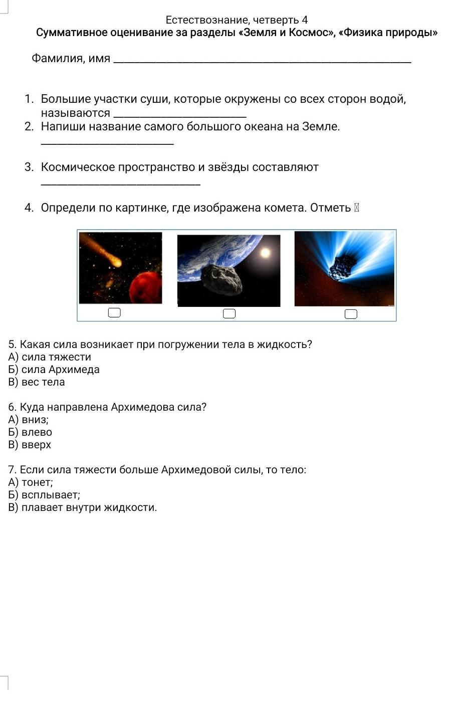 Большие участки суши, которые окружены со всех сторон водой, называются _________________________