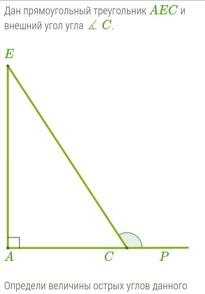 Дан прямоугольный треугольник AEC и внешний угол угла ∡ C.