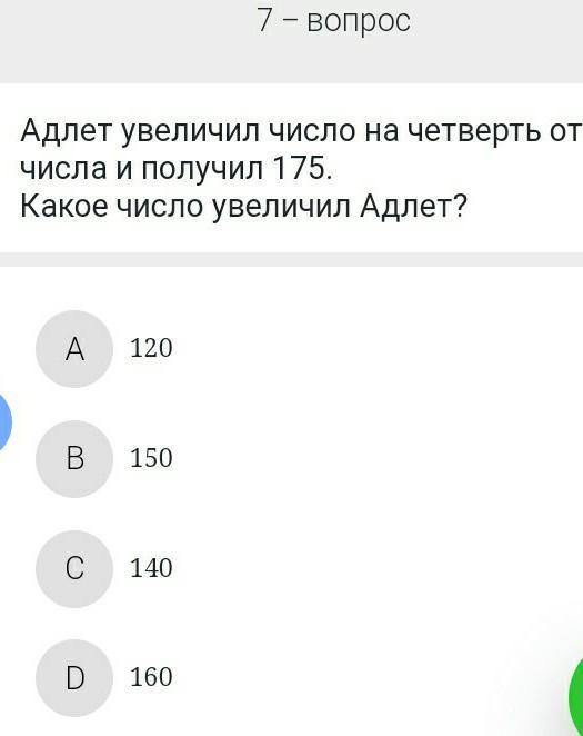 x*1/4 = x/4. и число стало равно х+х/4=175.
