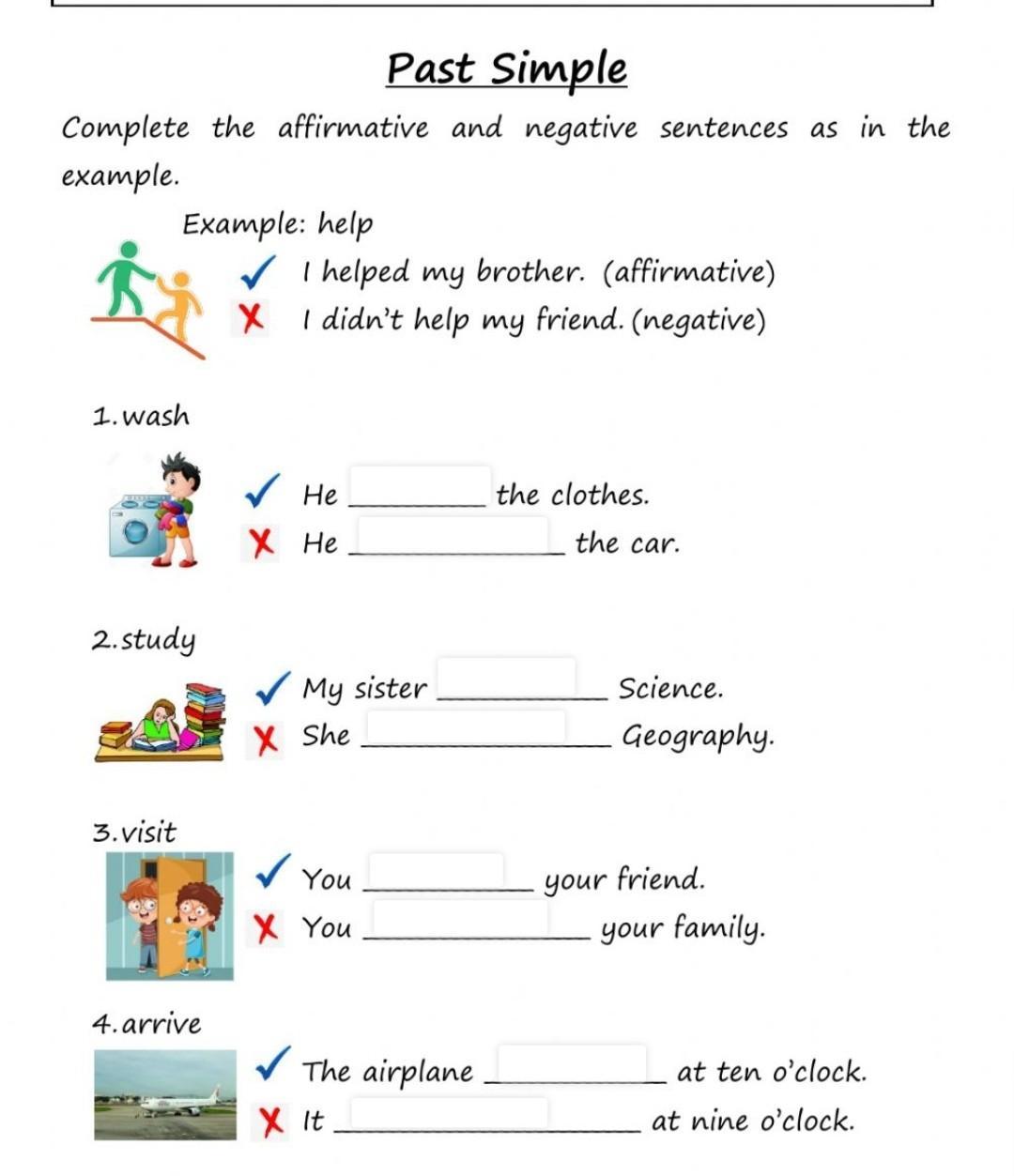 Объяснение: 1. Wash: ✅He washed the clothes. ❌He didn’t wash the car.