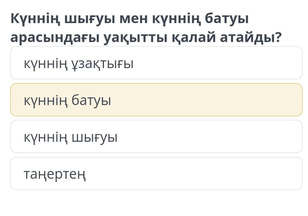 Күннің шығуы мен күннің батуы арасындағы уақытты қалай атайды? күннің ұзақтығы күннің батуы күннің шығуы таңертең