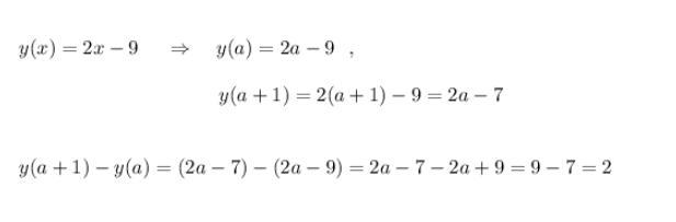 y(a+1) - y(a) = 2a+2-9-2a+9 = 2(наша любимая оценка)
