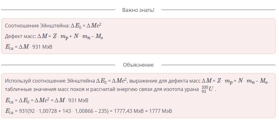 . Ответ округли до целых, выразив МэВ, и запиши в указанном месте.