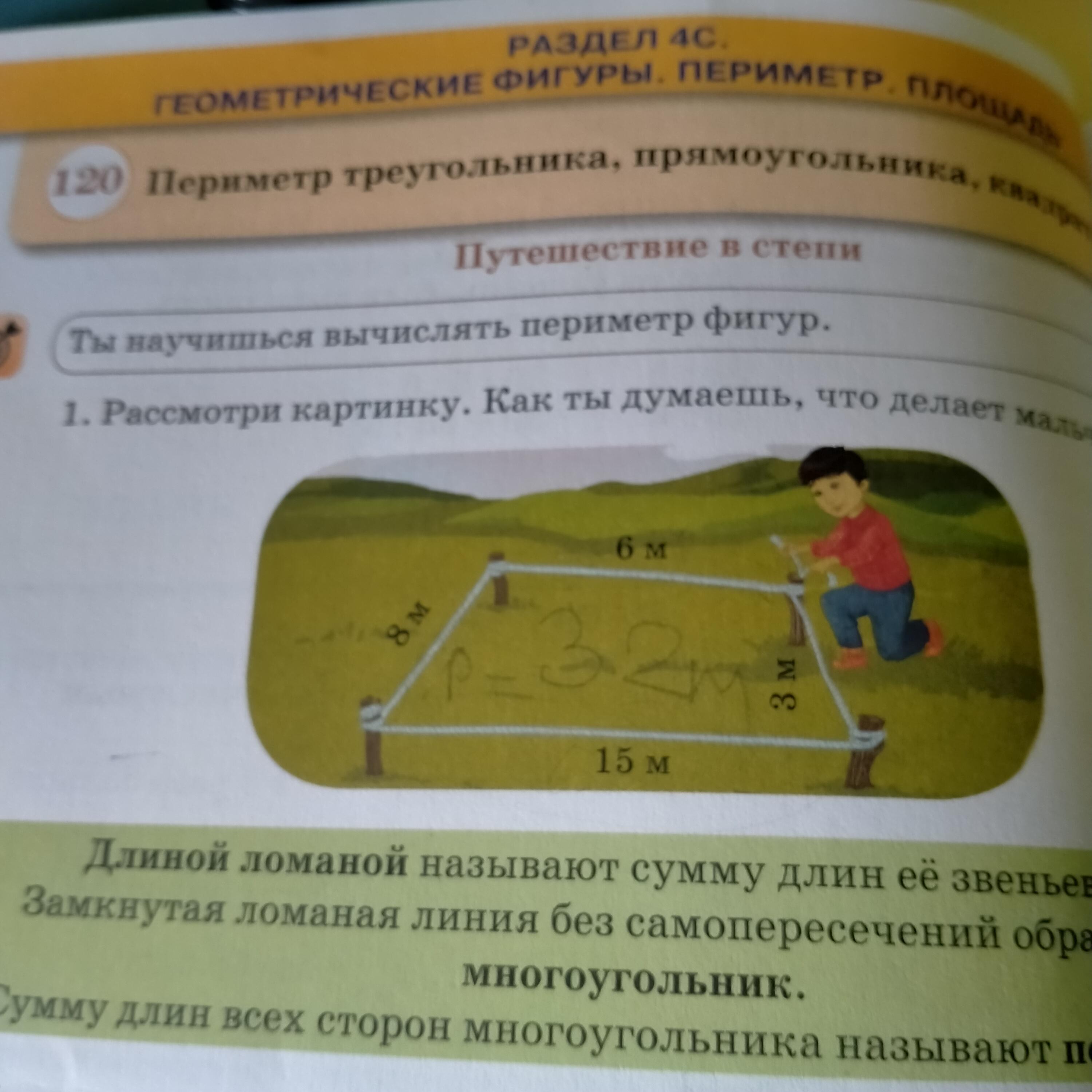 строит геометрическую фигуру из веревки и палок