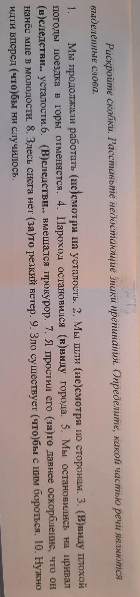 Раскройте скобки. Расставьте недостающие знаки препинания. Определите, какой частью речи являются