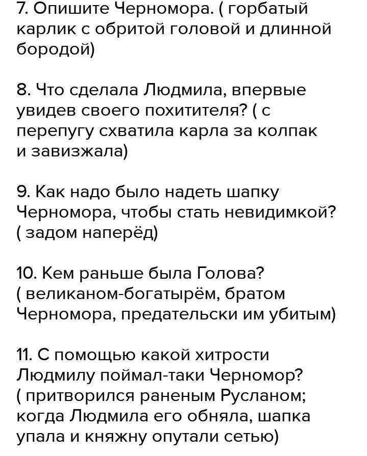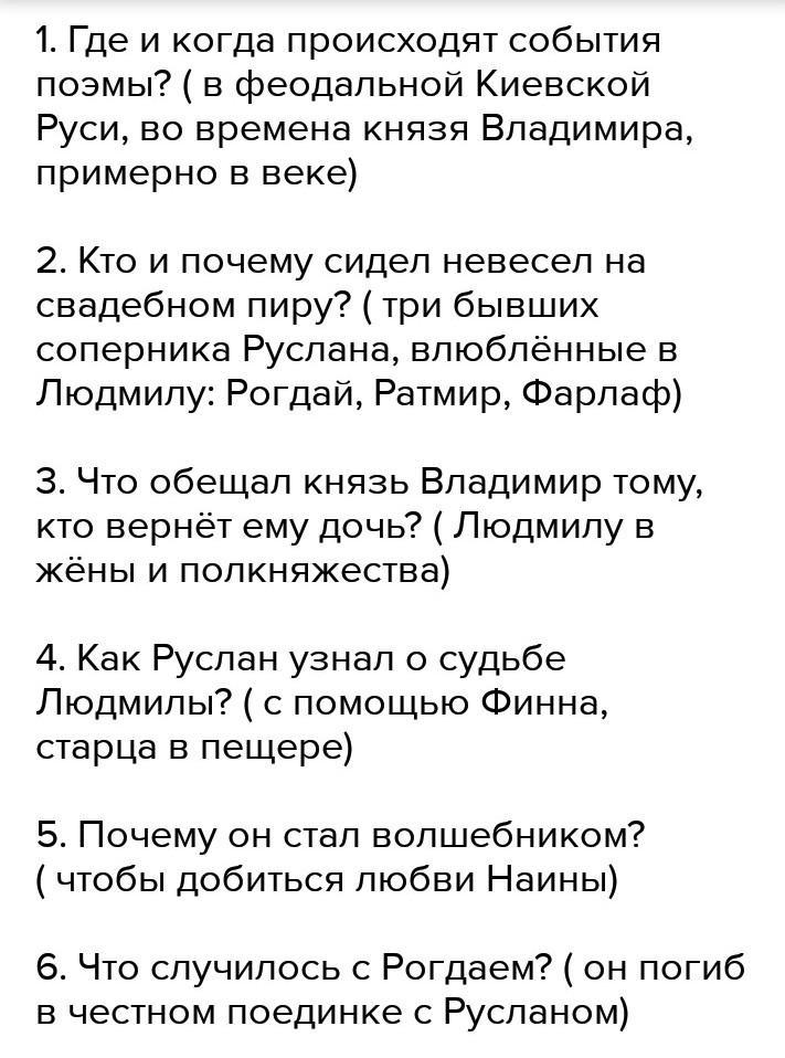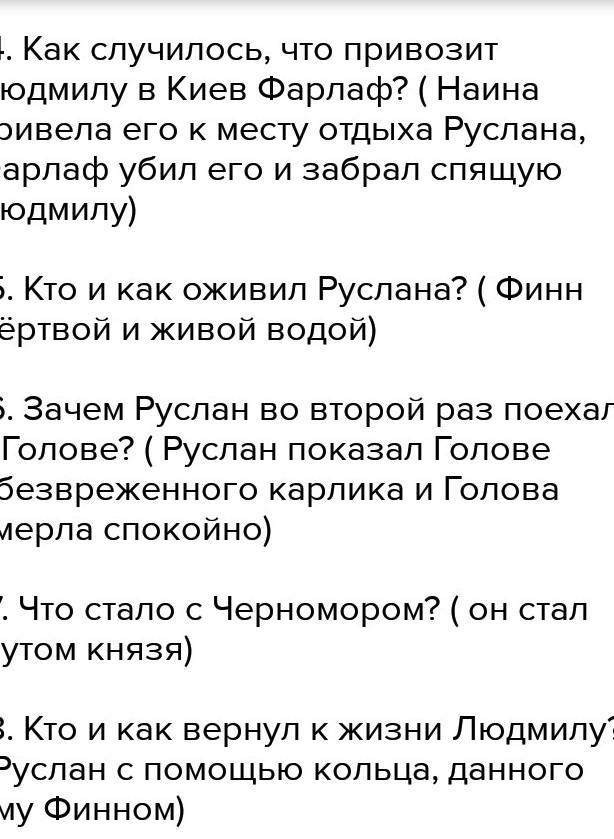 Восстановите сюжет. Запишите номера событий в хронологическом порядке: 1.История Головы. 2.Победа над печенегами. 3.Поединок Руслана и Рогдая. 4.Предательство Фарлафа. 5.Встреча Руслана с Финном. 6.Черномор заколдовал Людмилу. 7.Пир-свадьба.. 8.К Людмиле попадает шапка Черномора. 9.Финн оживляет Руслана. 10.Похищение Людмилы. 11.Наина предупреждает Черномора. 12.Поединок Руслана и Черномора.