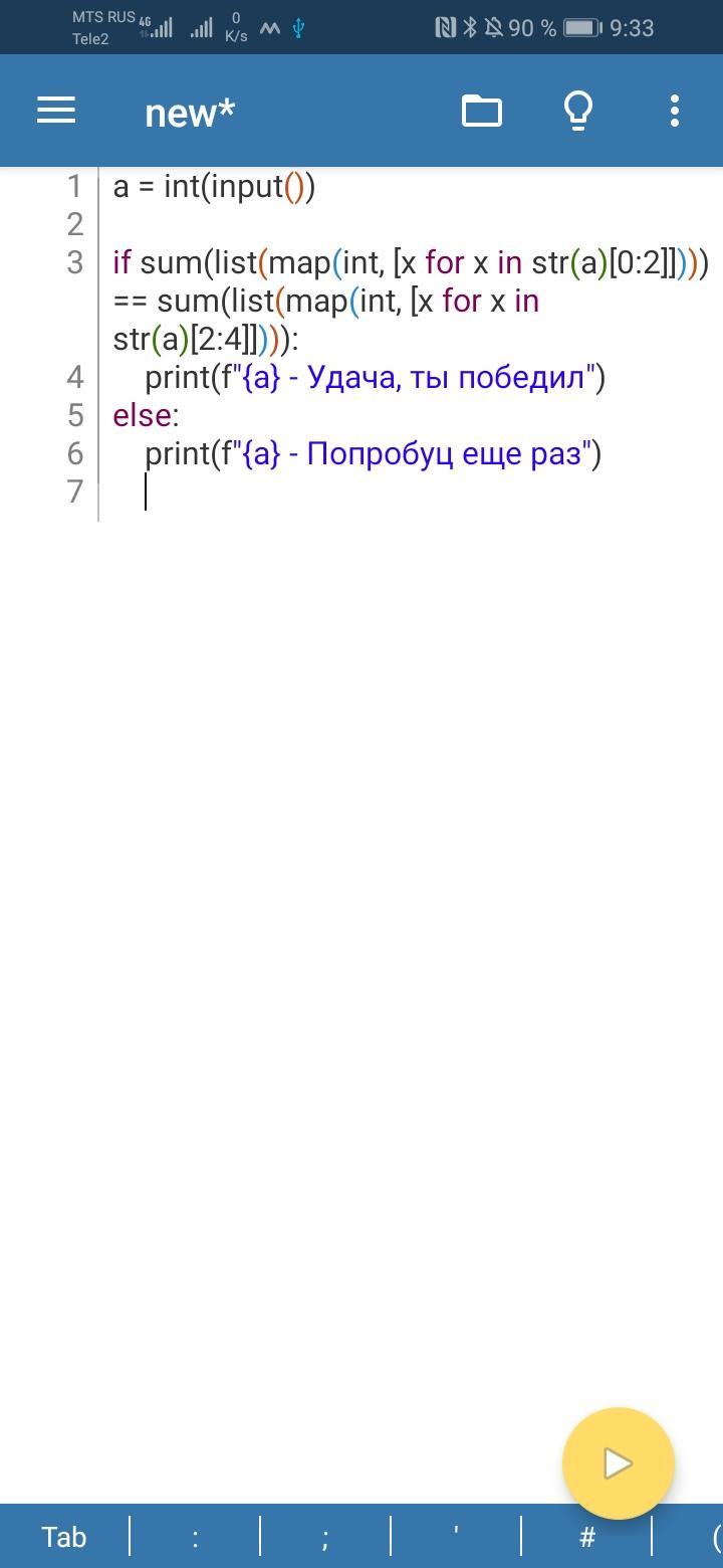 if sum(list(map(int, [x for x in str(a)[0:2]]))) == sum(list(map(int, [x for x in str(a)[2:4]]))):