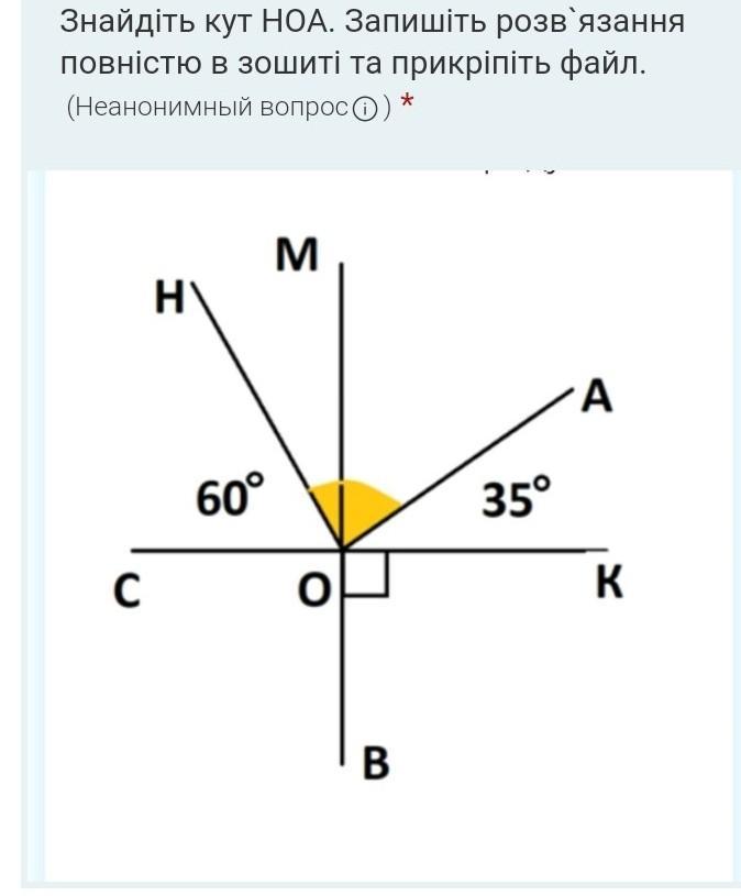 Угол НОА = угол СОК - угол СОН - угол АОК = 180° - 60° - 35° = 85°