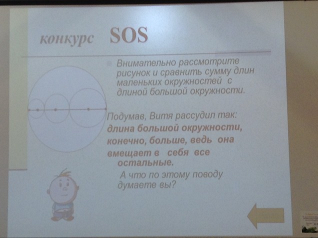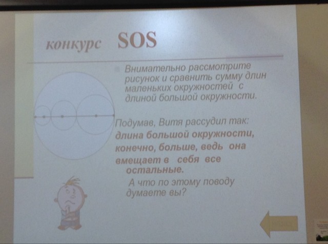 периметр большей равен Pi*d, а периметры меньших Pi*d1, Pi*d2 и Pi*d3, при этом d = d1+d2+d3, следовательно сумма периметров равна Pi*d1+Pi*d2+Pi*d3 = Pi*(d1+d2+d3) = Pi*d