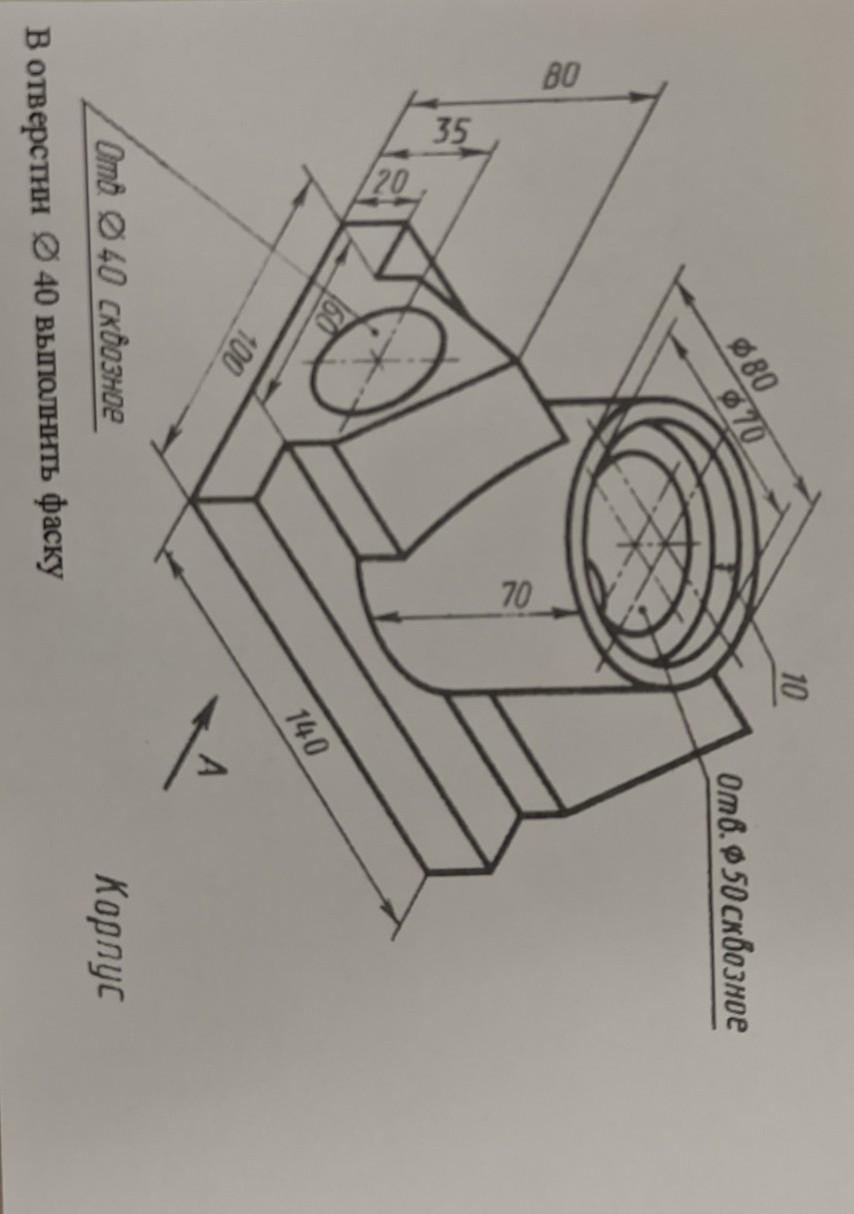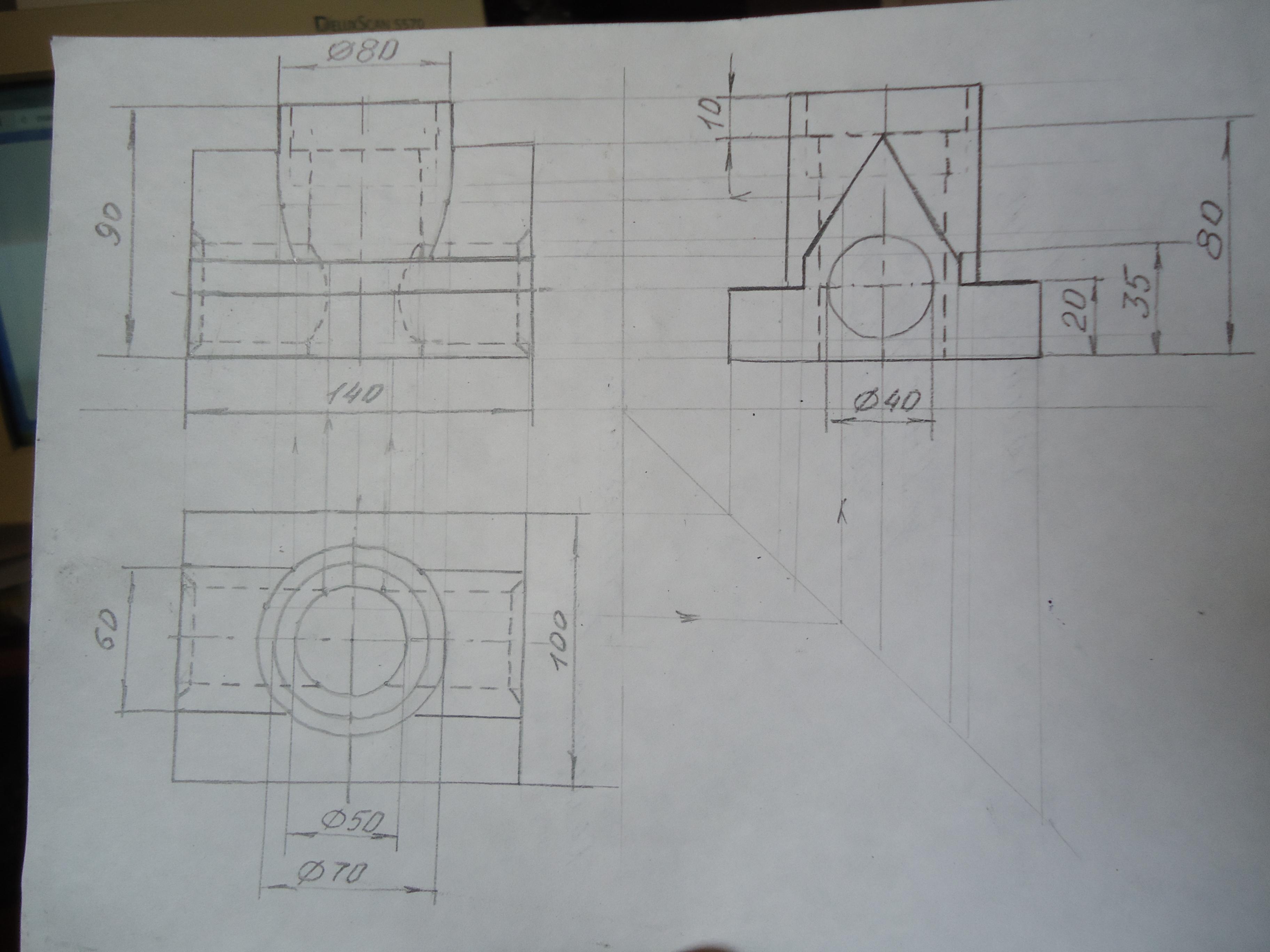 Пересечение горизонтального и вертикального отверстий также будет на виде сверху по дуге. Нахождение необходимых точек я отметила стрелками.