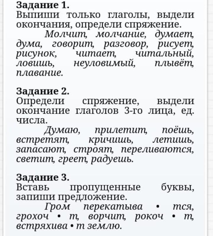 Глаголы - молчит (2 спр) , думает (1 спр), говорит(2 спр), рисует(1 спр), читает(1 спр), ловишь(2 спр), плывёт(1 спр).
