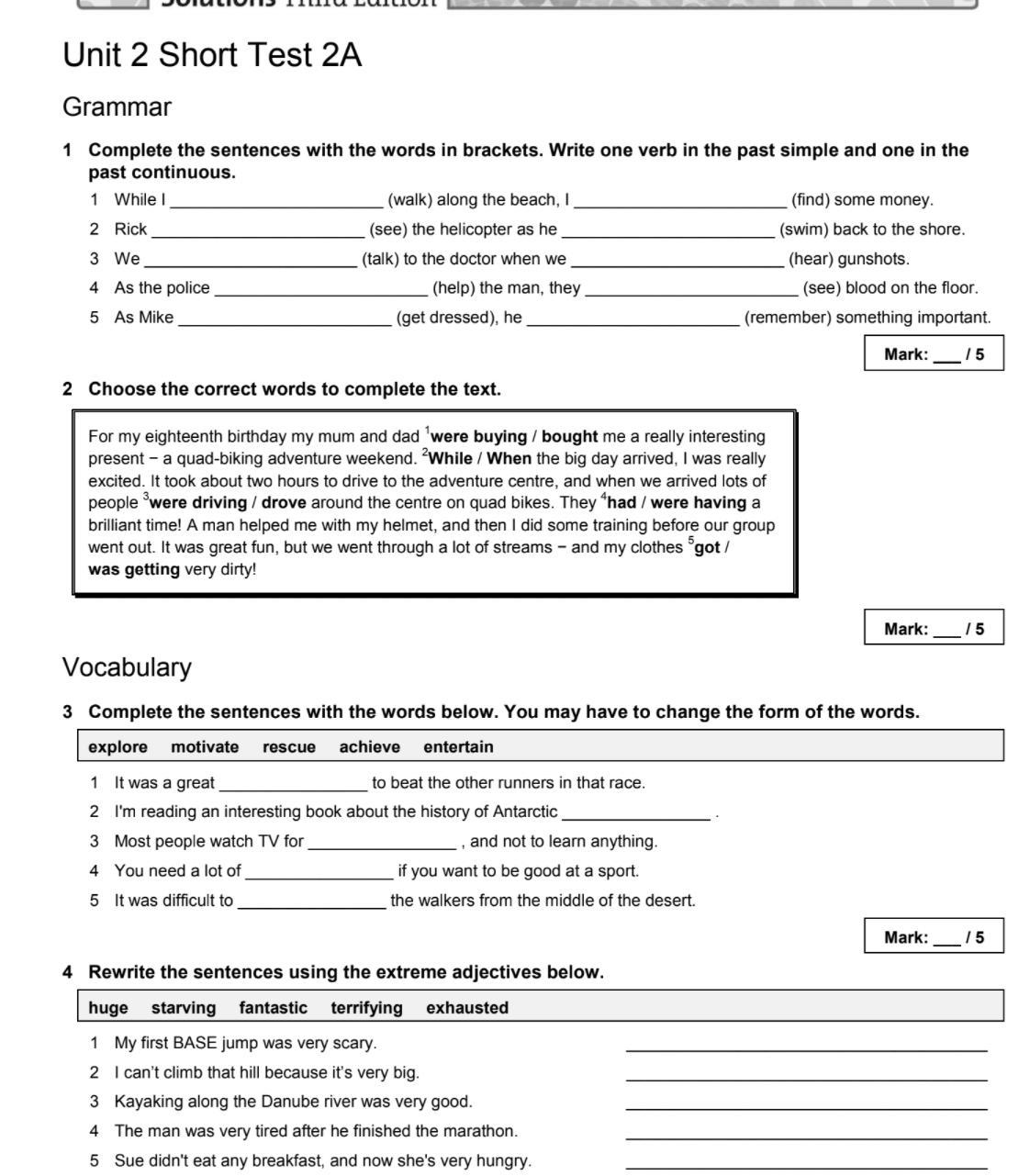 1 Завершите предложения словами в скобках. Напишите один глагол в прошлом простой и один в