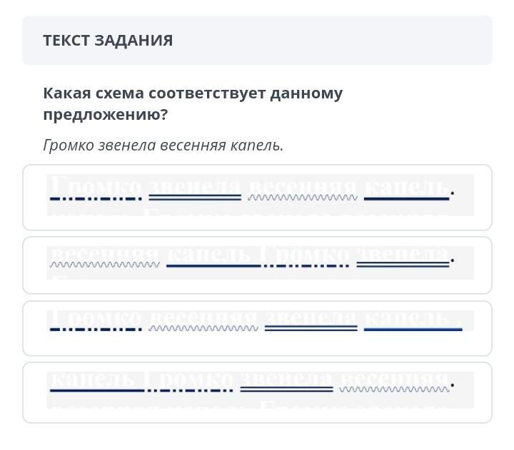 Громко (- • - • - • -) звенела(=====) весенняя (~~~~~~~) капель (—————).