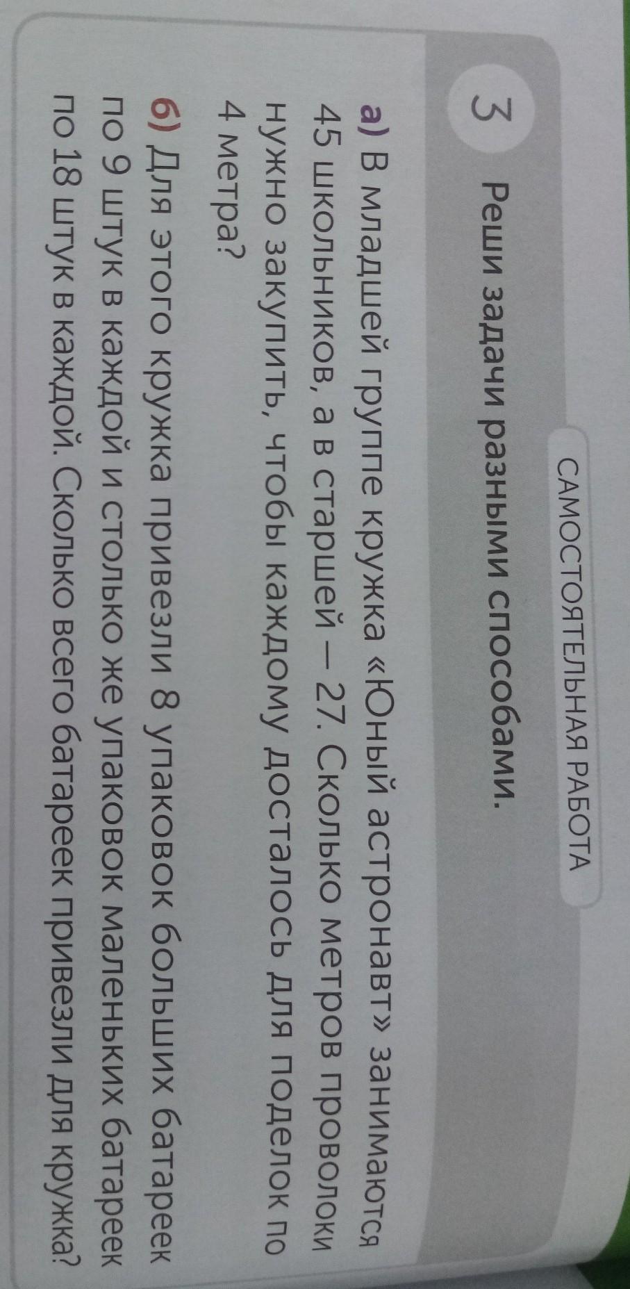 по 18 штук в каждой. Сколько всего батареек привезли Для кружка