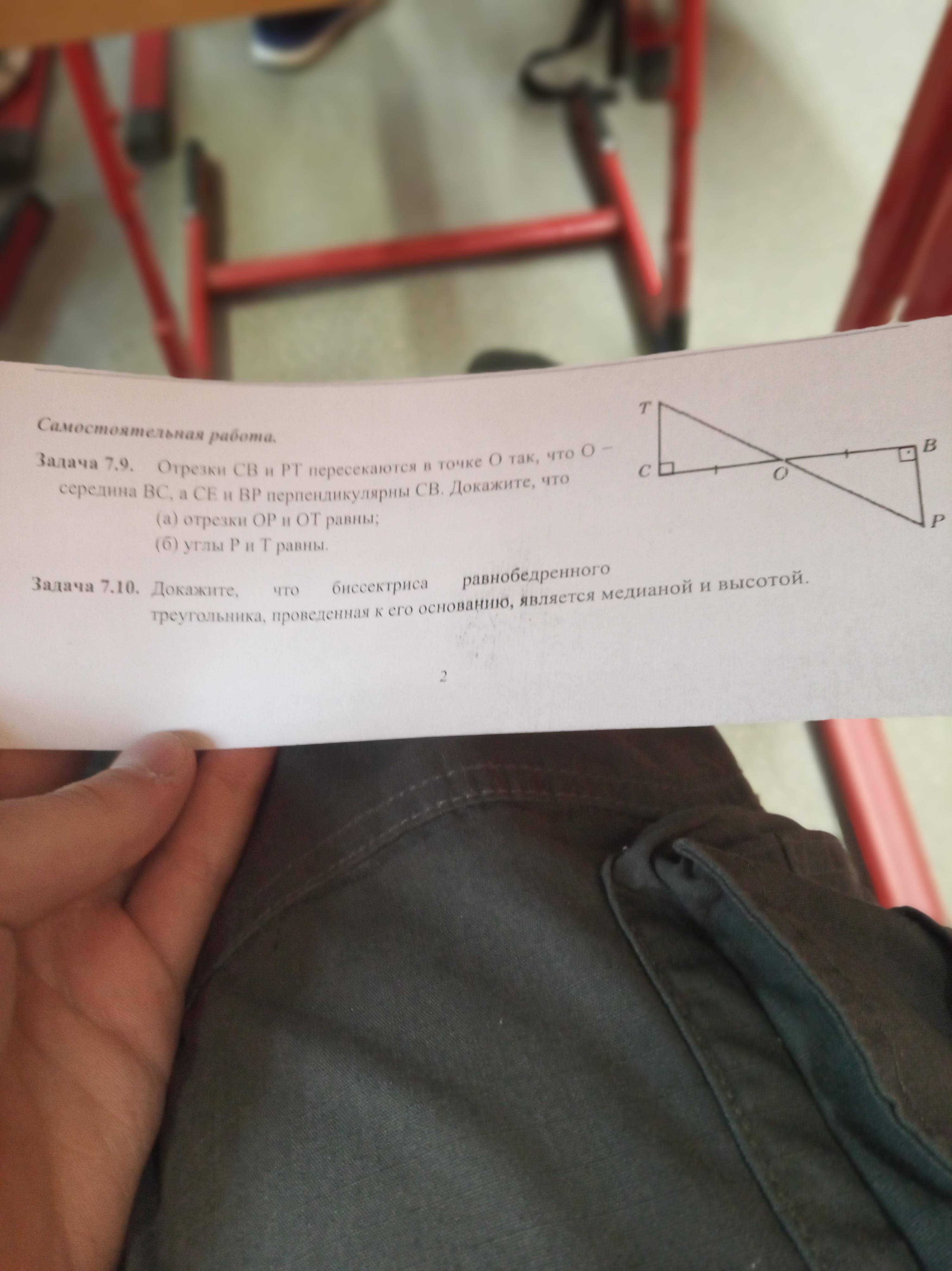 Треугольник ОСТ и треугольник ОВР равны между собой по 2 признаку равенства прямоугольных треугольников-по катету и прилежащему ему острому углу