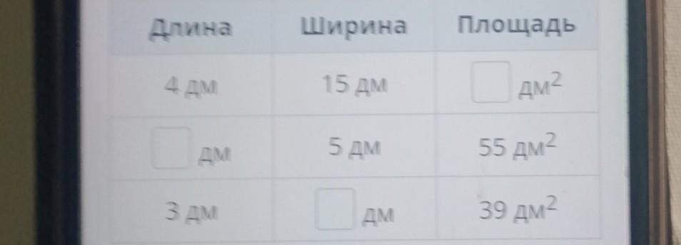 Площадь = длина * ширину. - 4*15 =60 дм2