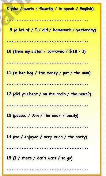 АНГЛИЙСКИЙ ПОМОГИТЕ ПЛИЗ | нужно правильно расставить слова (по порядку, чтобы получилось предложение)