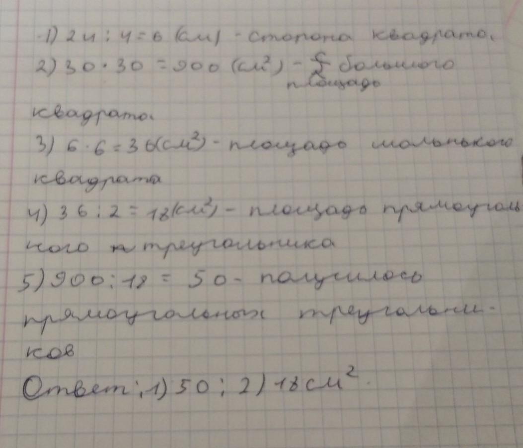 Квадрат со стороной 30 см разделен на квадраты с периметром