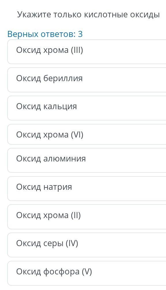 оксид хрома(6),оксид серы(4),оксид фосфора(5)