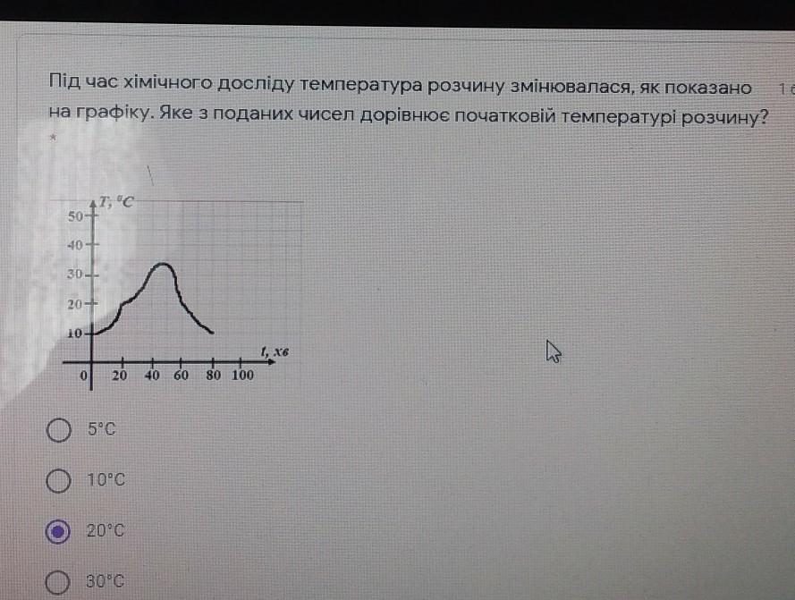 Покрокове пояснення: Початкова температура дорівнює 0. За графіком точці 0 відповідає 10°С