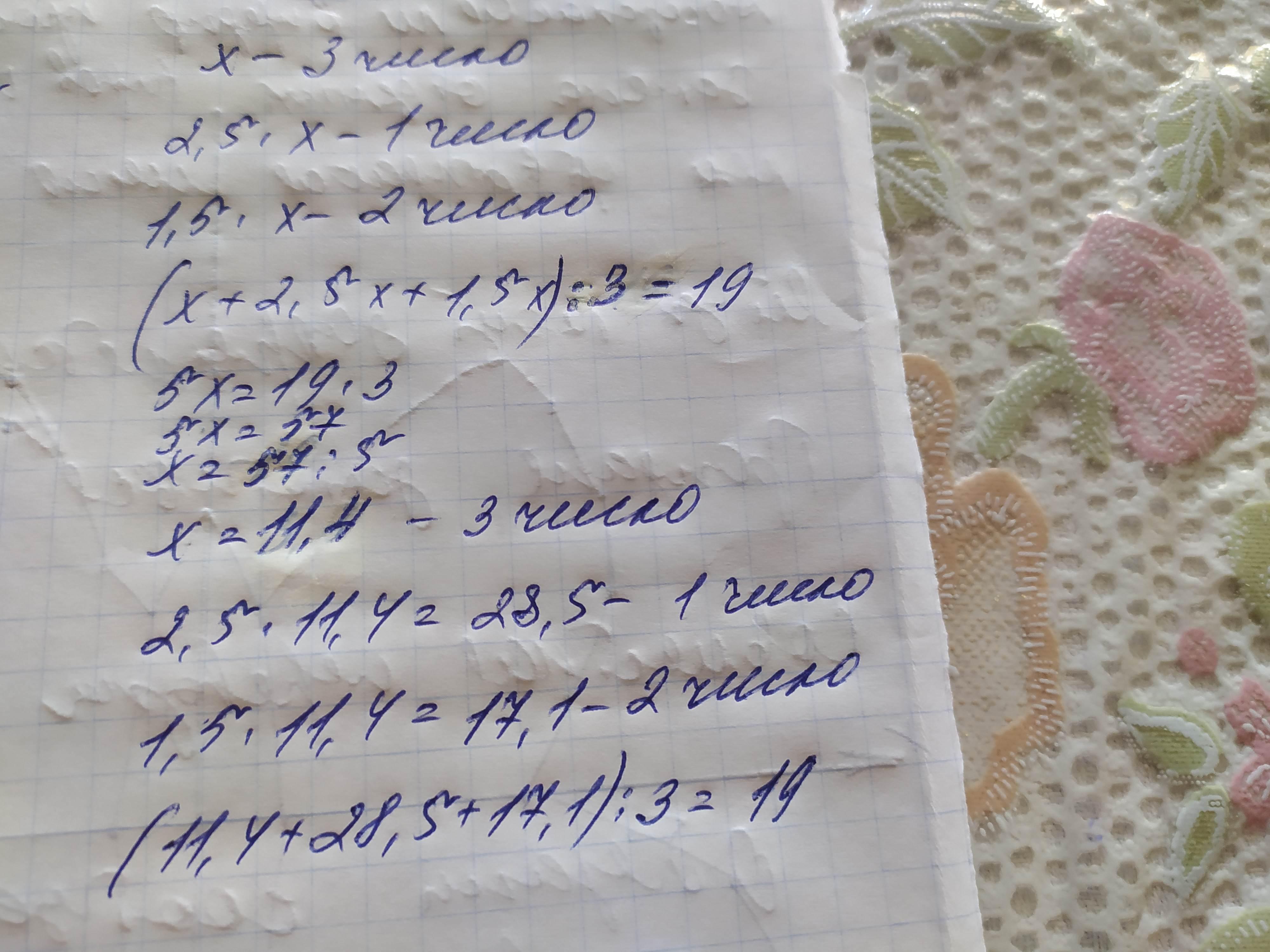 Знайди ці числа, якщо перше число в 2,5 разів більше третього, а друге в 1,5 рази(-ів) більше третього.
