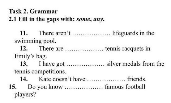 Займенники Any і Some є визначниками. Вони використовуються, коли мова йде про невизначених кількостях, числах, в тих випадках, коли точна кількість або число не важливі. Головним чином, Some використовується в оповідальних Реченнях, а Any – в питальних і негативних.