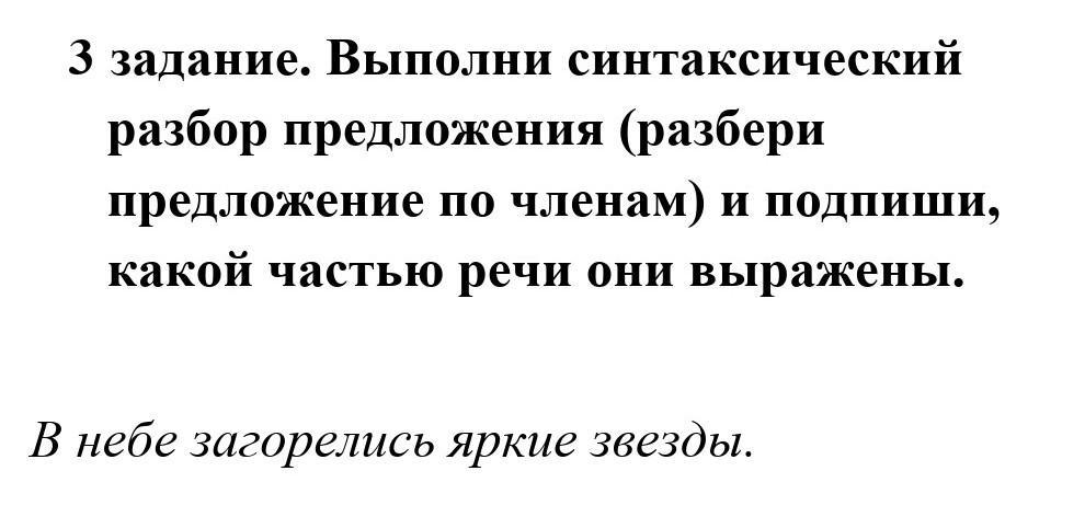 3 задание. Выполни синтаксический разбор предложения (разбери предложение по членам) и подпиши, какой частью речи они выражены.