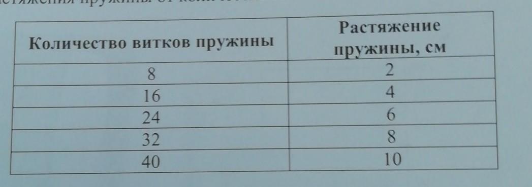 а затем, уменьшая число витков пружины, снова подвешивал груз. В таблице представлена