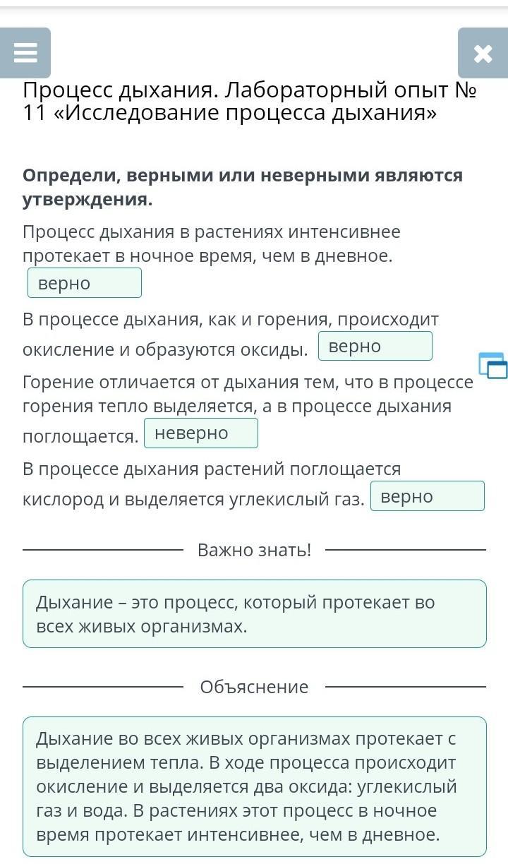 Определи верными или неверными являются утверждения процесс дыхания у растений интенсивно протекает в ночное время чем дневные