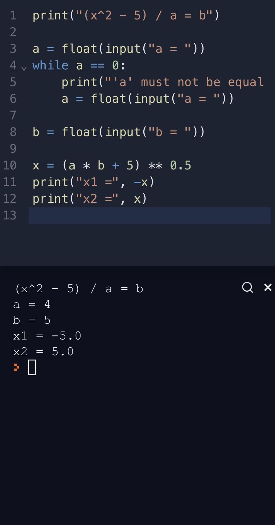 Відкрийте середовище розробки програмного забезпечення IDLEта створіть новий файл Python. Розробіть програму, для розв'язання рівняння