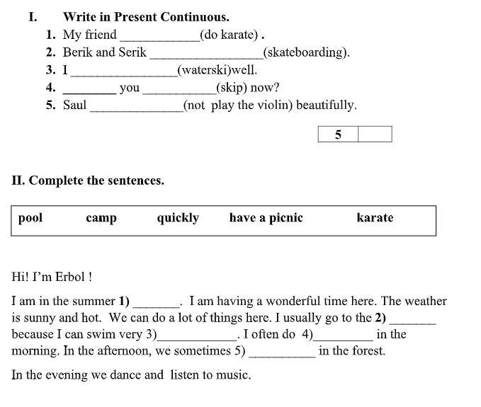 1) karate 2) camp 3) pool 4 quickly
