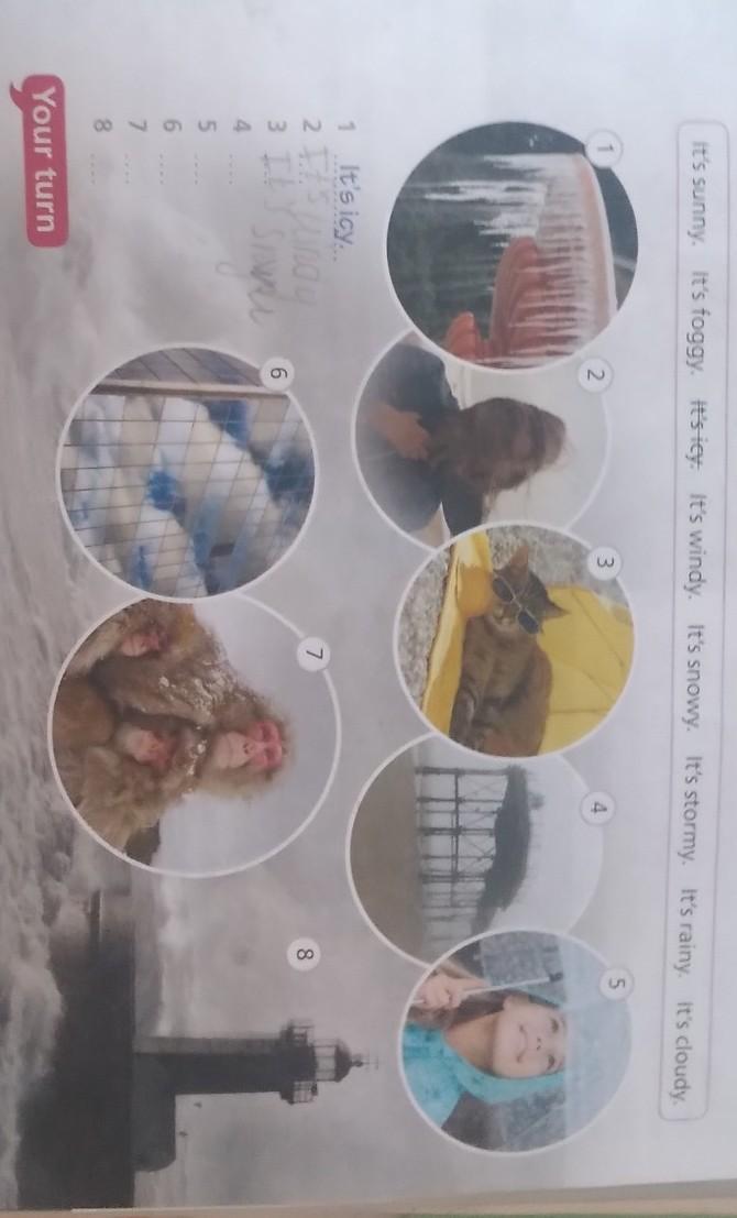 2.Match the photos of the weather with the phrases in the box.Then listen, check andrepeat.
