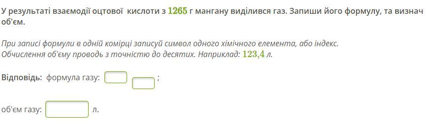 Відповідь : формула газу Н2 , об*єм газу = 515,2 л