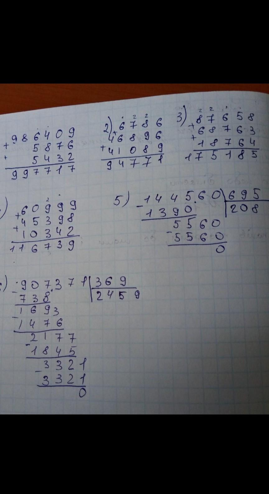 Вычисли писмено 87658 плюс 68763+18764 986409+5876+54326786+46896+41089 60999+45398+10342 247×27 460598:782 239×454 144560:695