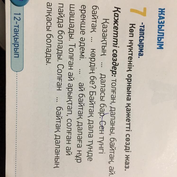 Қажетті сөздер: толған, даланы, байтақ, ай.