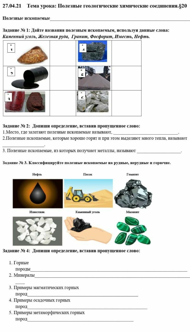Ответ:1 завдання: 1 железная руда , 2 нефть, 3 гранит, 4 каменной уголь, 5известь, 6 фосфорит.